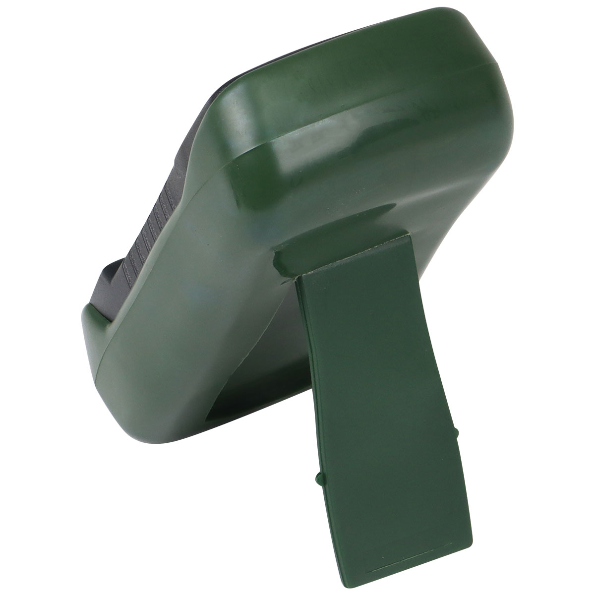 Possui case de proteção com suporte para mantê-lo inclinado e pegada ante deslizante, aumentando a aderência da mão devido a capa de borracha.